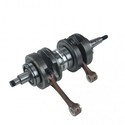 A crankshaft is a mechanical part able to perform a conversion between reciprocating motion and rotational motion. It is connected to a flywheel in four-stroke cycle engine.